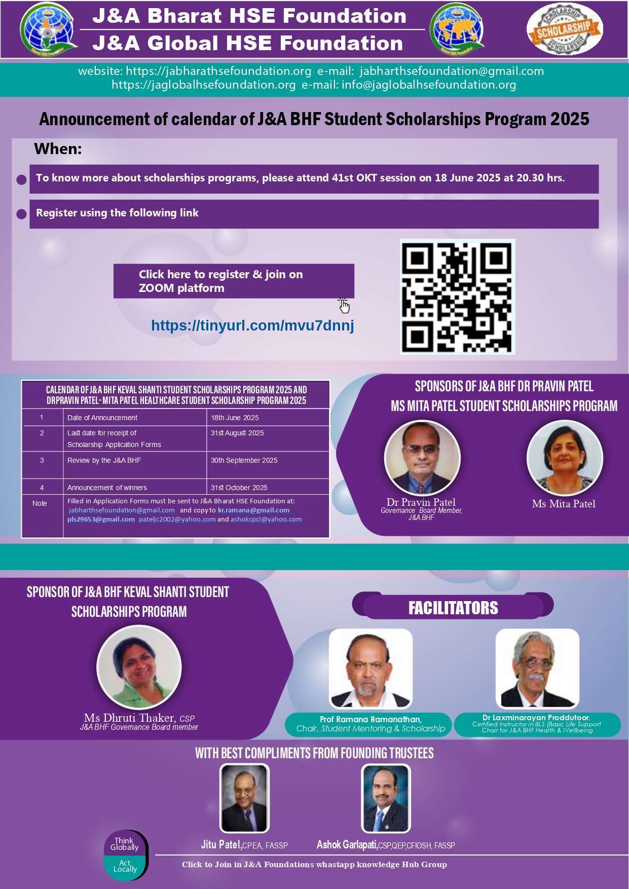 On 3rd November 2025 at Gandhi Hospital, scholarship certificates and cheques were awarded to two candidates under the Dr. PP MP Healthcare Student Scholarship 2025, an initiative of the J&A Bharat HSE Foundation / J&A Global HSE Foundation. The recipients were Vibhooti Mamatha from the Government School of Nursing, Gandhi Medical College, and Beerakayala Rajith from the Government College of Nursing, Bhoiguda, Secunderabad. The scholarship cheques were formally handed over by Dr. Laxminarayan Proddutoor and Prof. Ramana.