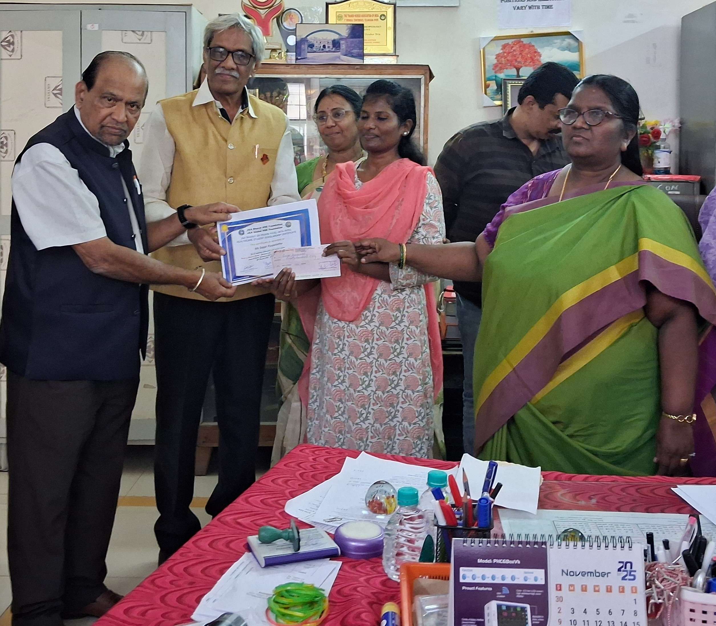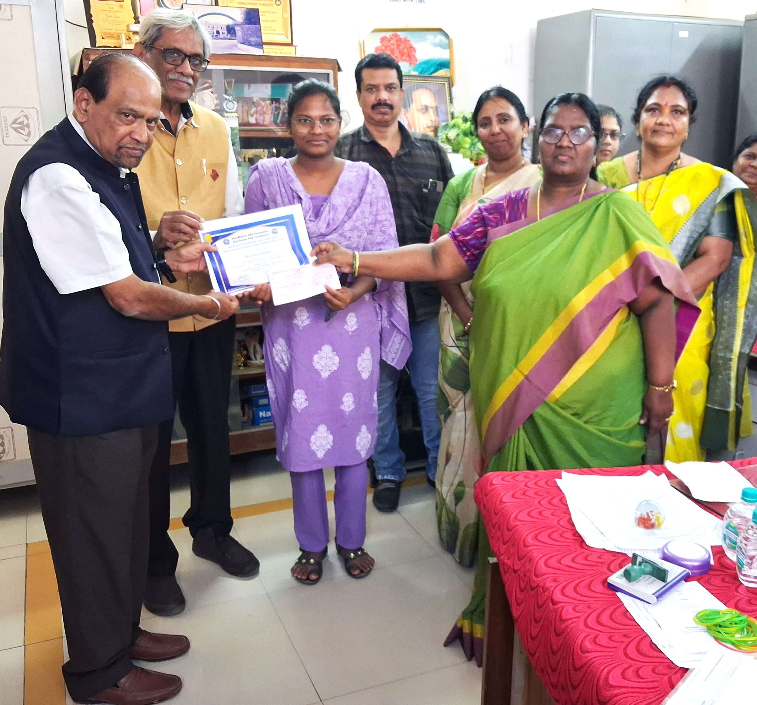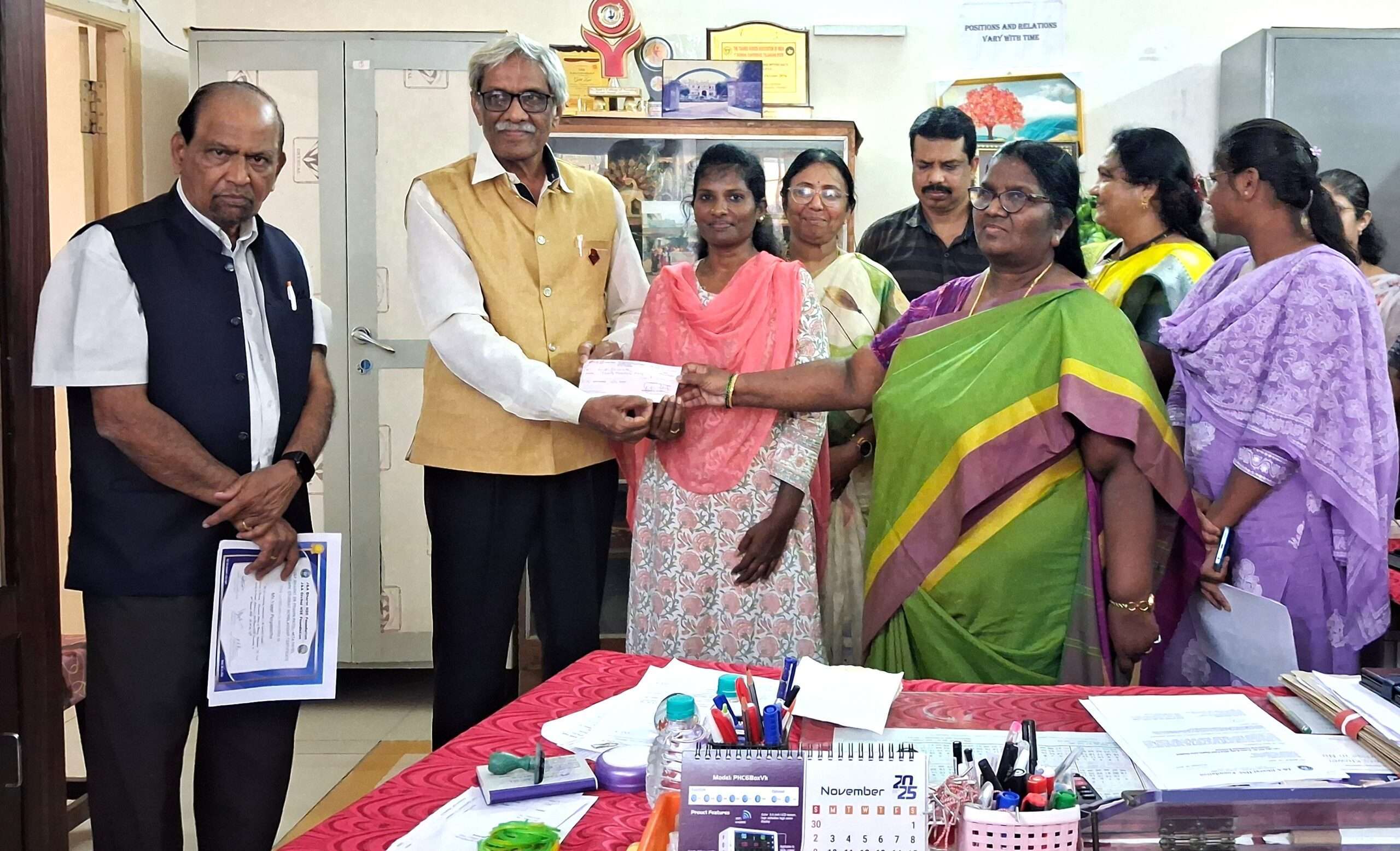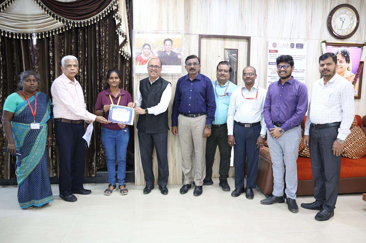 On 23rd December 2025 at Vel Tech Rangarajan Dr.Sagunthala R&D Institute of Science and Technology, Chennai, Tamil Nadu, India scholarship award and certificate under J&A BHF Keval Shanti Scholarship Program 2025 was handed over to Mrs. Abirami Arumugam, by J&A BHF Advocate Mr K Dakshinamurthy in the presence of Vice Chancellor Dr Rajat Gupta, Faculty and students.