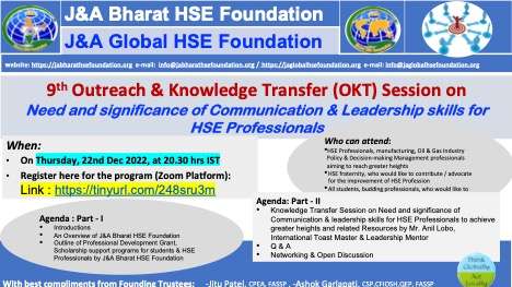 9th Outreach & Knowledge Transfer (OKT) Session on Need and significance of Communication & Leadership skills for HSE Professionals