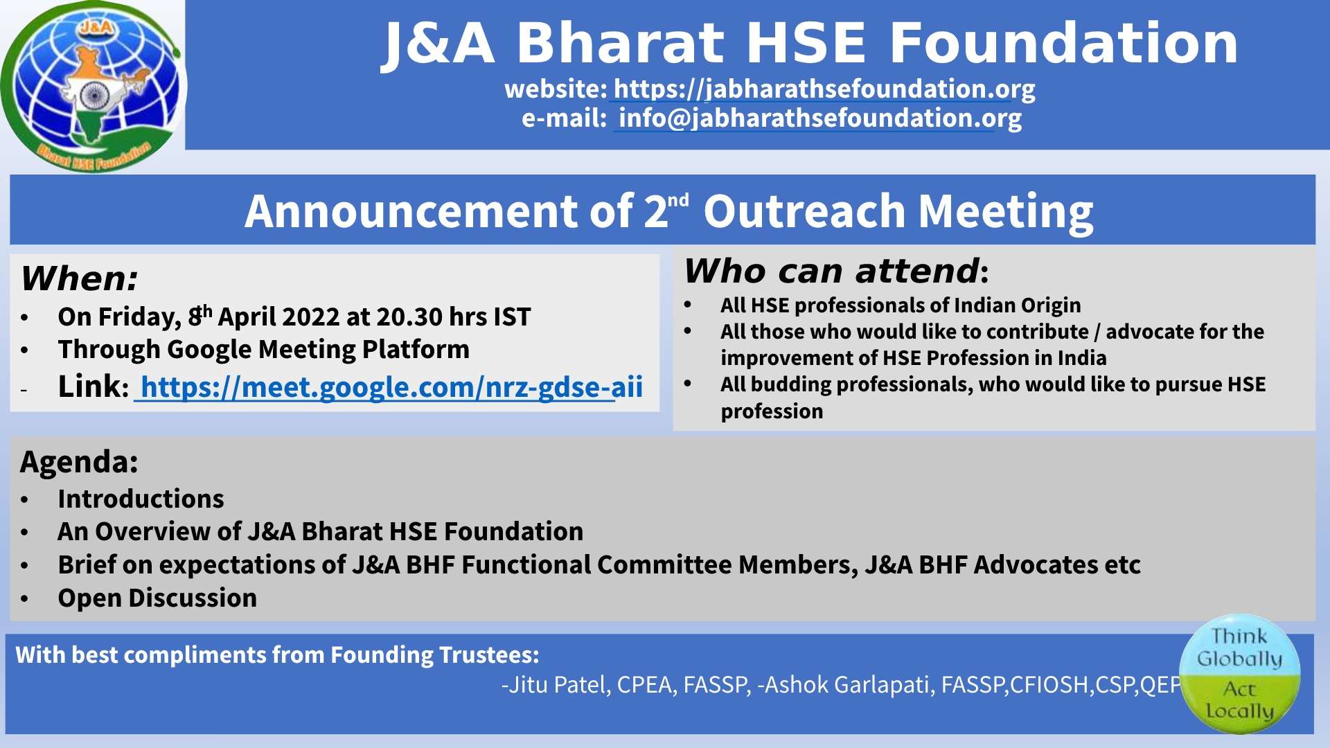 Organizer : J&A Bharat HSE Foundation Announcement of 2nd Outreach Meeting
